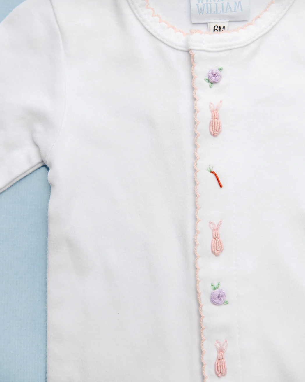 Hop into Easter fun with this adorable pink bunny sleeper. Designed for cozy comfort, this one-piece features soft fabric and charming bunny details perfect for holiday celebrations, playdates, or bedtime. Ideal for little ones who love festive style and all-day wearability. A delightful addition to any spring wardrobe.
