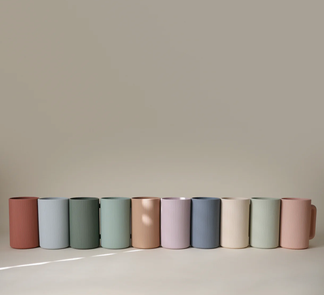 Made from food grade silicone and featuring calming colors, the Mushie bath rinse cup helps children enjoy bath time and end the day extra clean.