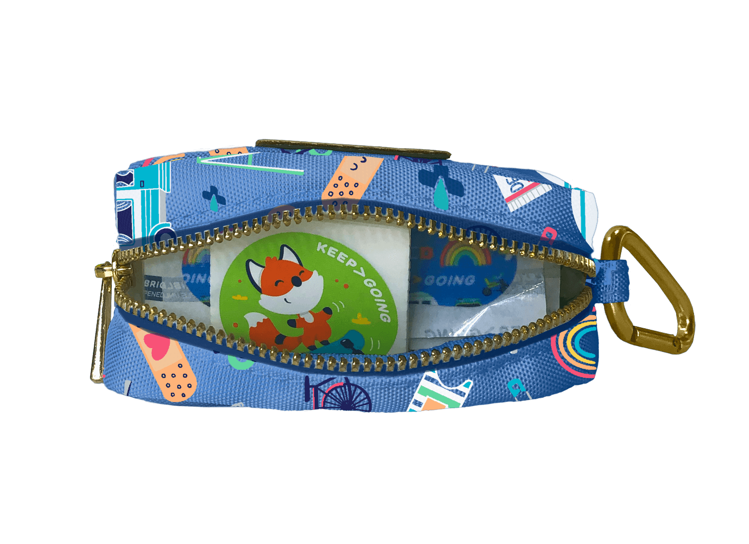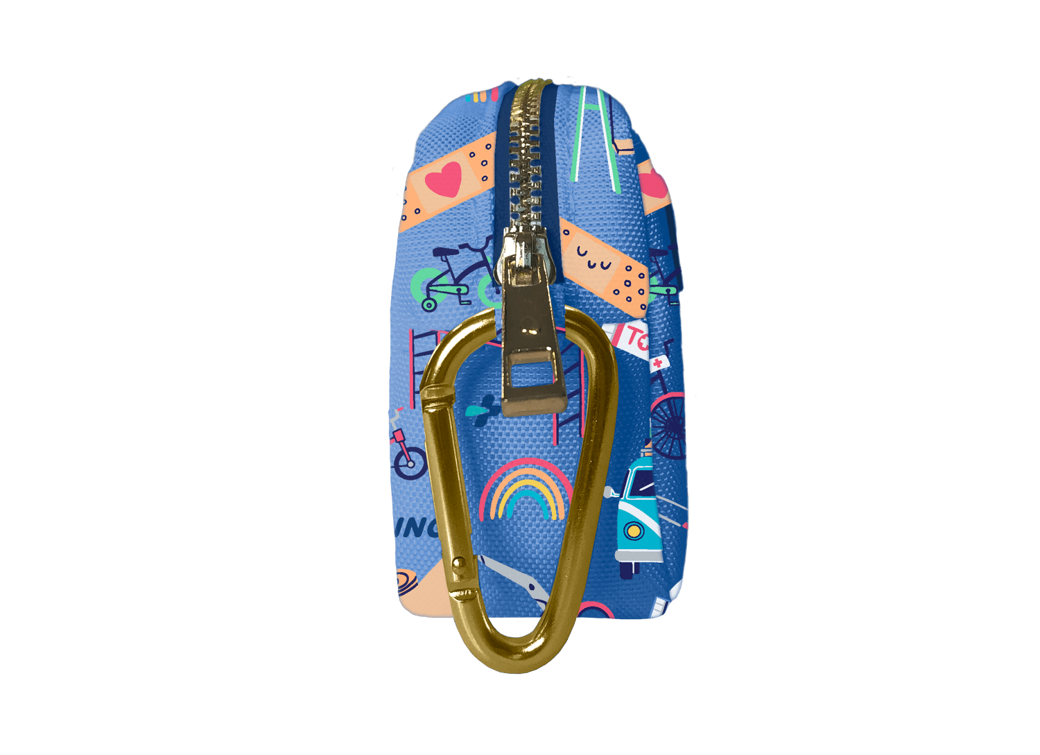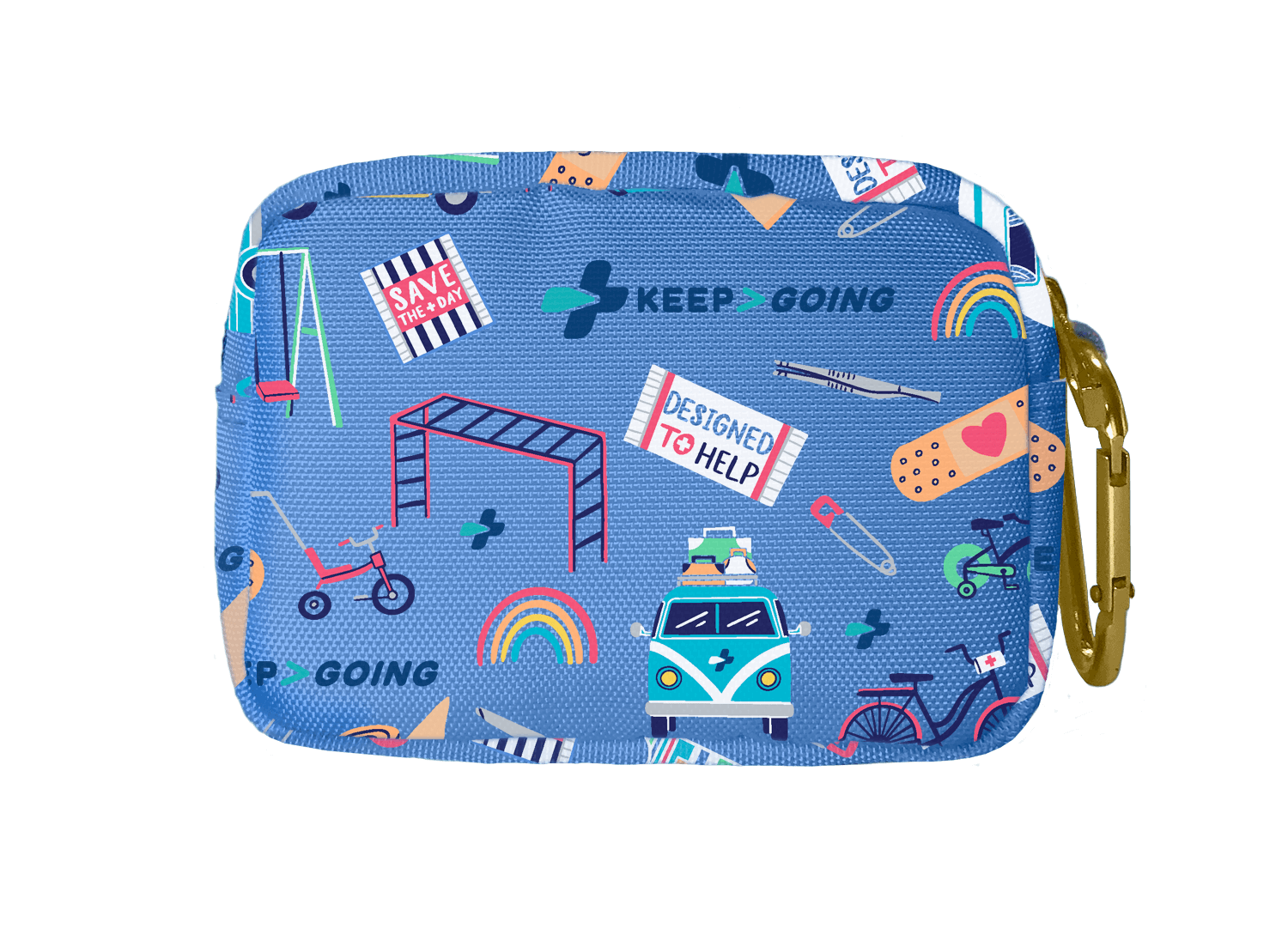 First Aid Kit for on the go  * Small case but fully loaded with 60 Premium First Aid items * Includes Metal Tweezers, Wipes, Ointments, Assorted Bandages, and much more (see below for full list) * Carabiner attaches easily to backpack, stroller, or small purse * All Contents are 100% Latex-Free * HSA/FSA eligible * Size: 4.5" x 3.75" x 1.75" * Due to the small size, we could not add extra pockets (that make our GoKit and SuperKit so organized)