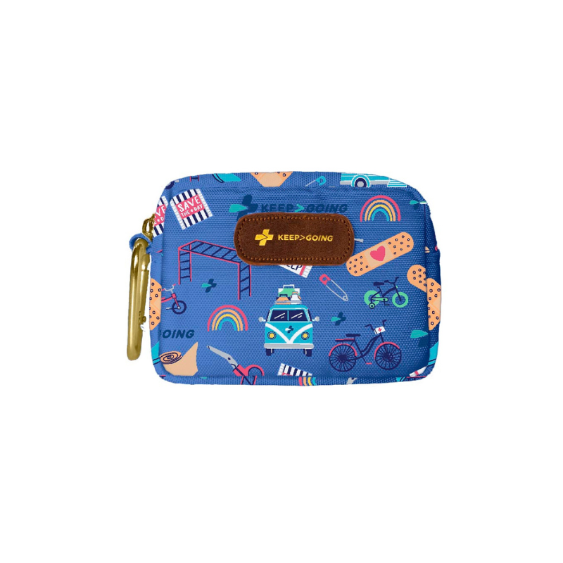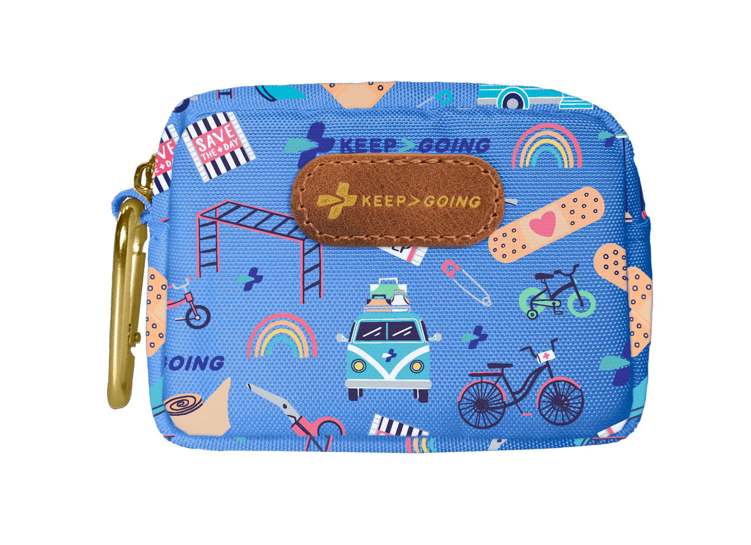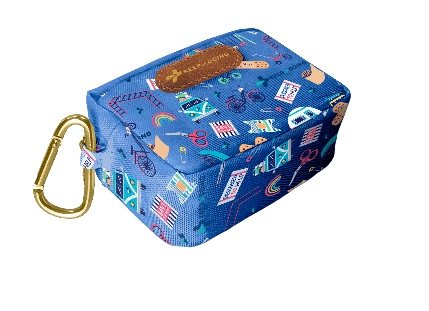 First Aid Kit for on the go  * Small case but fully loaded with 60 Premium First Aid items * Includes Metal Tweezers, Wipes, Ointments, Assorted Bandages, and much more (see below for full list) * Carabiner attaches easily to backpack, stroller, or small purse * All Contents are 100% Latex-Free * HSA/FSA eligible * Size: 4.5" x 3.75" x 1.75" * Due to the small size, we could not add extra pockets (that make our GoKit and SuperKit so organized)