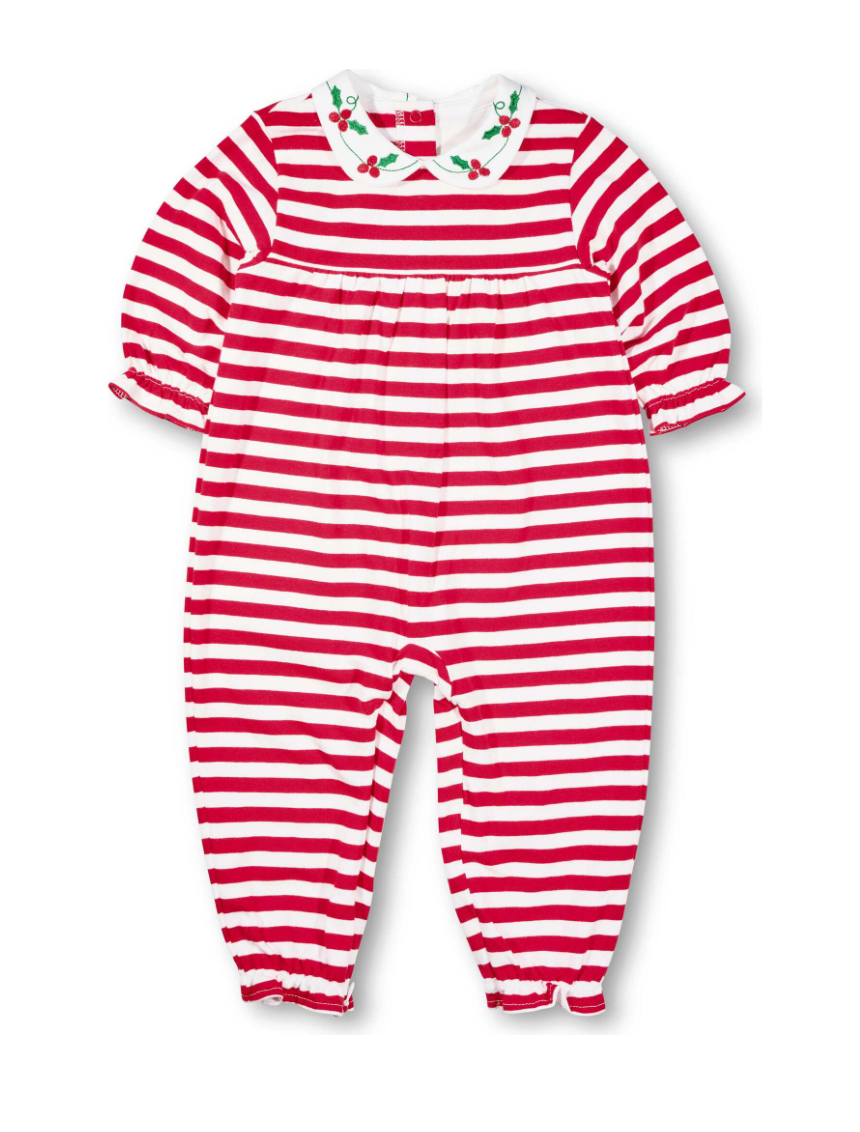 Wrap your little one in cozy comfort with the Stripe Knit Longall featuring charming embroidered holly details. Crafted from soft, breathable fabric, this longall ensures gentle warmth and all-day ease. Its timeless stripe pattern combined with festive embroidery adds a subtle touch of holiday spirit, making it perfect for seasonal gatherings or everyday wear. Easy to dress and made for lasting softness, this piece is a must-have for your child's wardrobe.